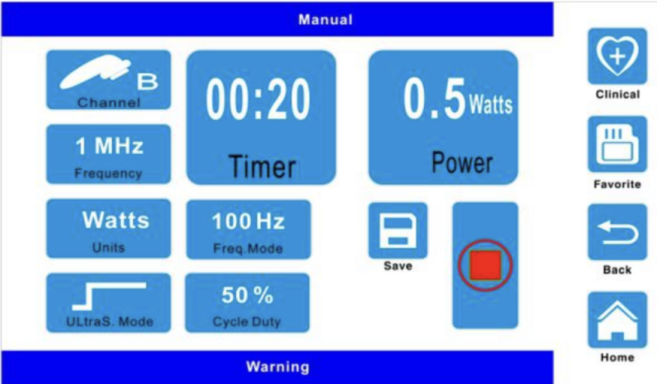 4 modes: continu, 4, 8 ou 12 chocs